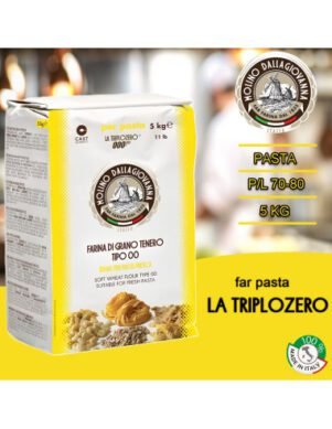 La harina para pasta La Triplozero “00” es perfecta para la elaboración de pasta fresca casera y rellena. Una harina blanca brillante y elástica que realza el color amarillo de la yema de huevo –Ideal para: Pasta fresca casera, pasta rellena, ñoquis – Piacenza italia